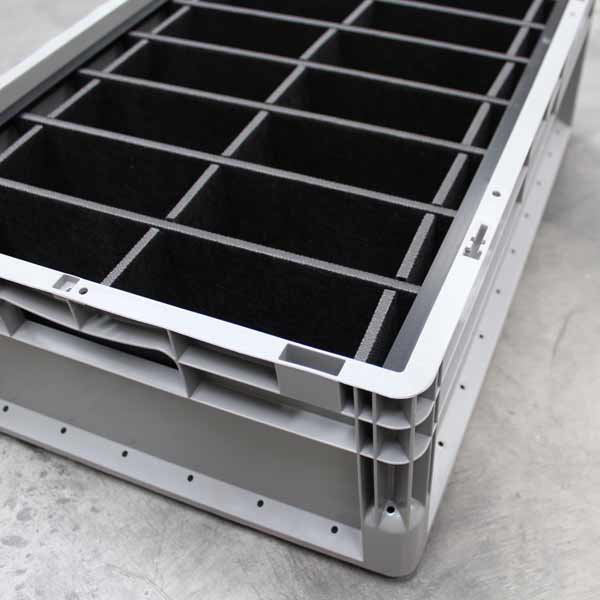 Euro container inserts can also significantly improve staff productivity, enabling much easier (and quicker) loading and unloading of parts.
