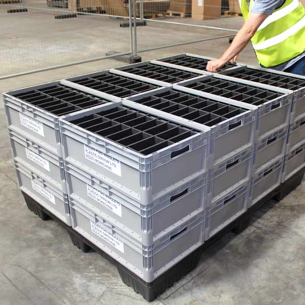 The industry standard 600 x 400 mm and 400 x 300 mm euro box sizes ensure compatibility with conveyors, pallets, warehouse racking and existing manufacturing processes.