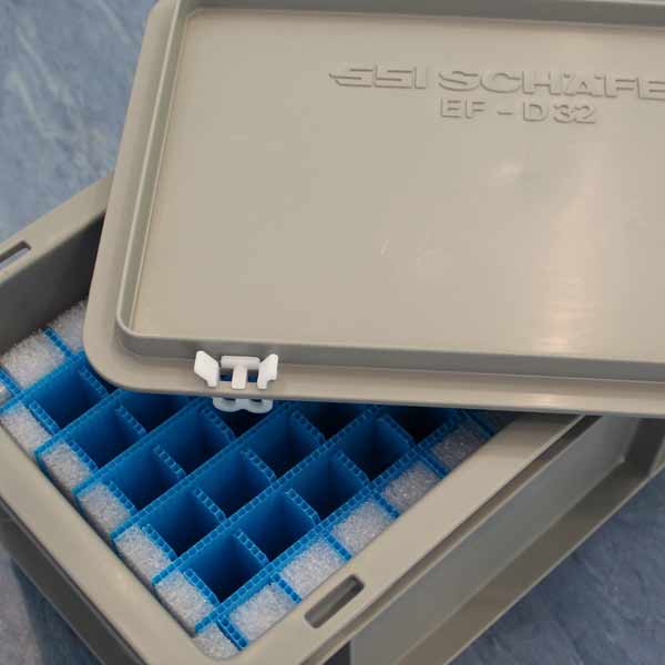 Using Euro-stacking containers with dividers also improves staff safety by preventing overloading of the boxes, which can lead to excessive weight and unsafe handling.
